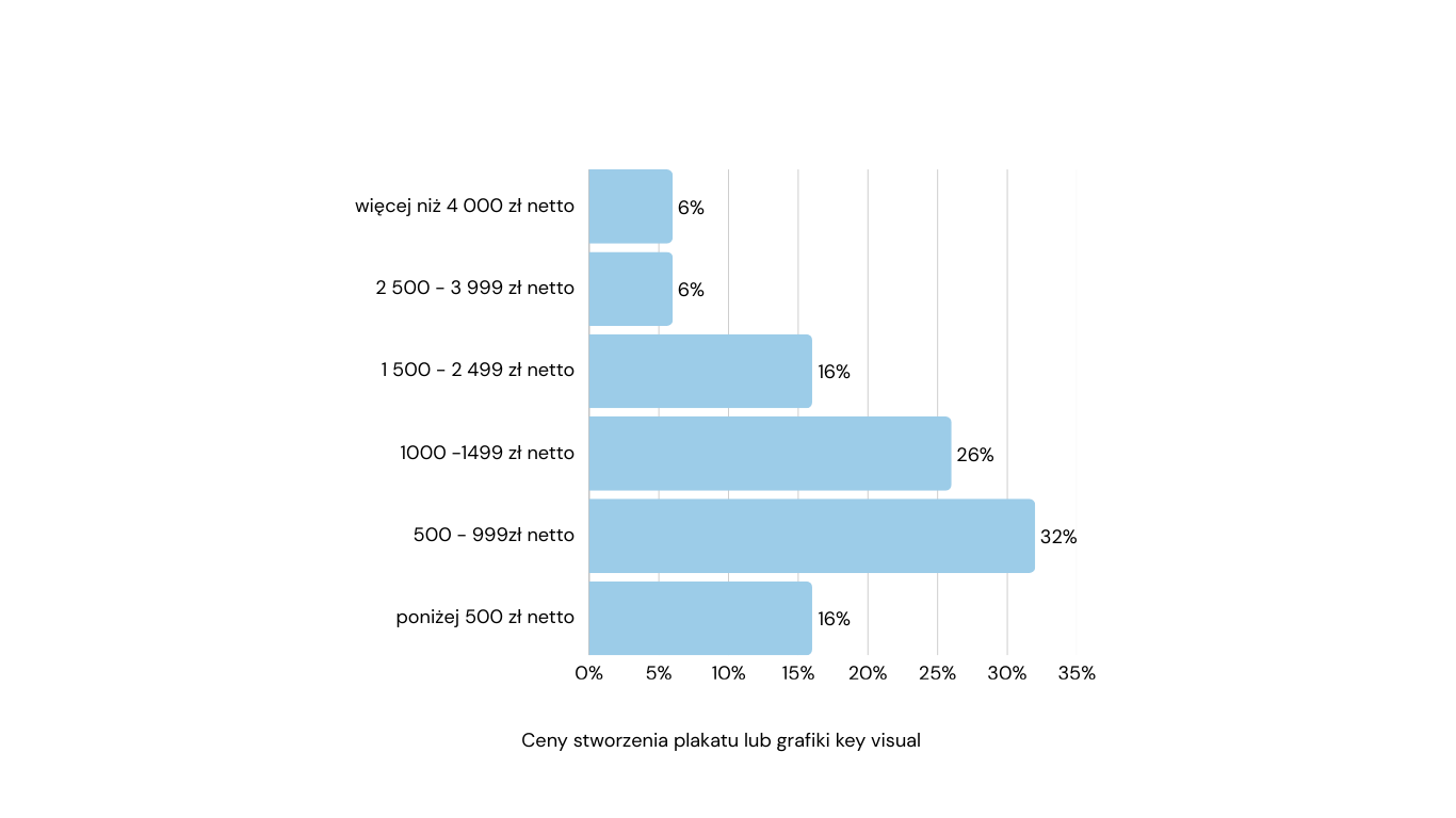 Tutaj również standardowy przedział cenowy to 200–499 zł netto – wskazało go 58% ankietowanych.