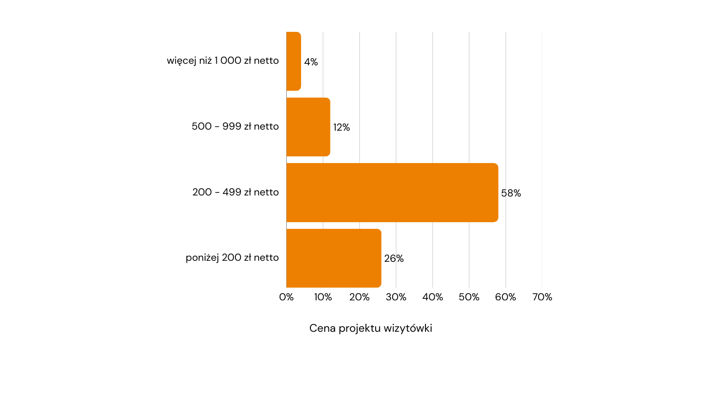 Jednak nadal możliwe jest wykonanie projektu wizytówek poniżej 200 zł netto– 26% ankietowanych deklaruje taką wycenę.