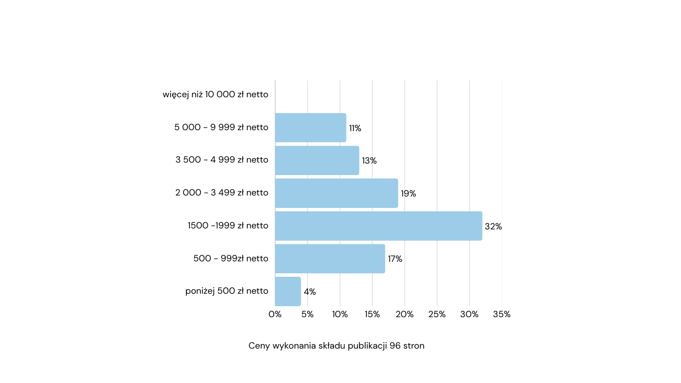 Prawie 1/3 projektantów zadeklarowała cenę składu publikacji w przedziale 5000–9999 zł netto.