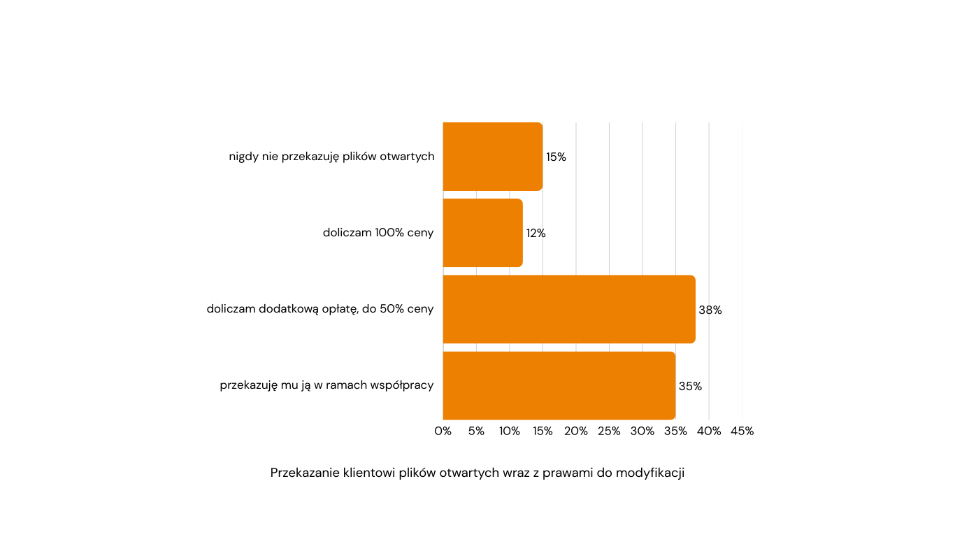 - 15% – odmawia przekazania plików otwartych klientowi.