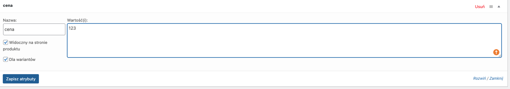 Dodaj atrybuty produktu