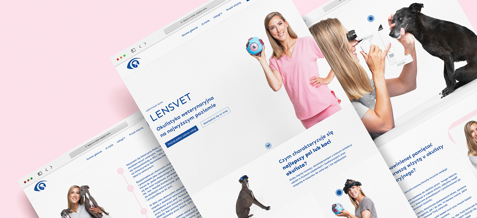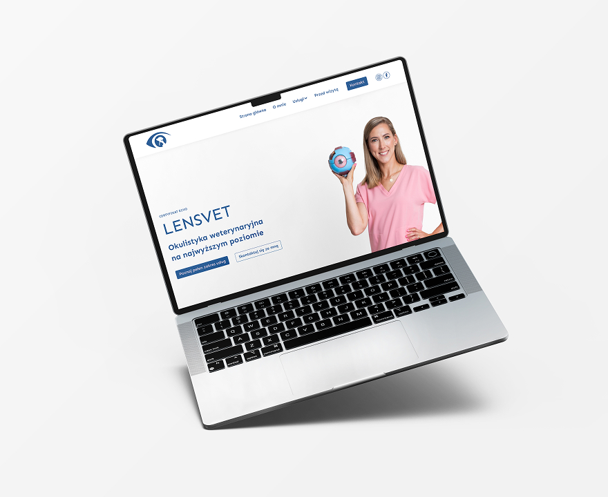 Dla marki LensVet, która zajmuje się okulistyką zwierząt wykonaliśmy stronę internetową z indywidualnie zaprojektowanymi ciekawymi animacjami. Strona powstała w technologii Webflow. Zaprojektowaliśmy także nowoczesne logo, stworzyliśmy paletę barw i materiały drukowane takie jak teczki, wizytówki. Zadbaliśmy także o doba widoczność w Google!